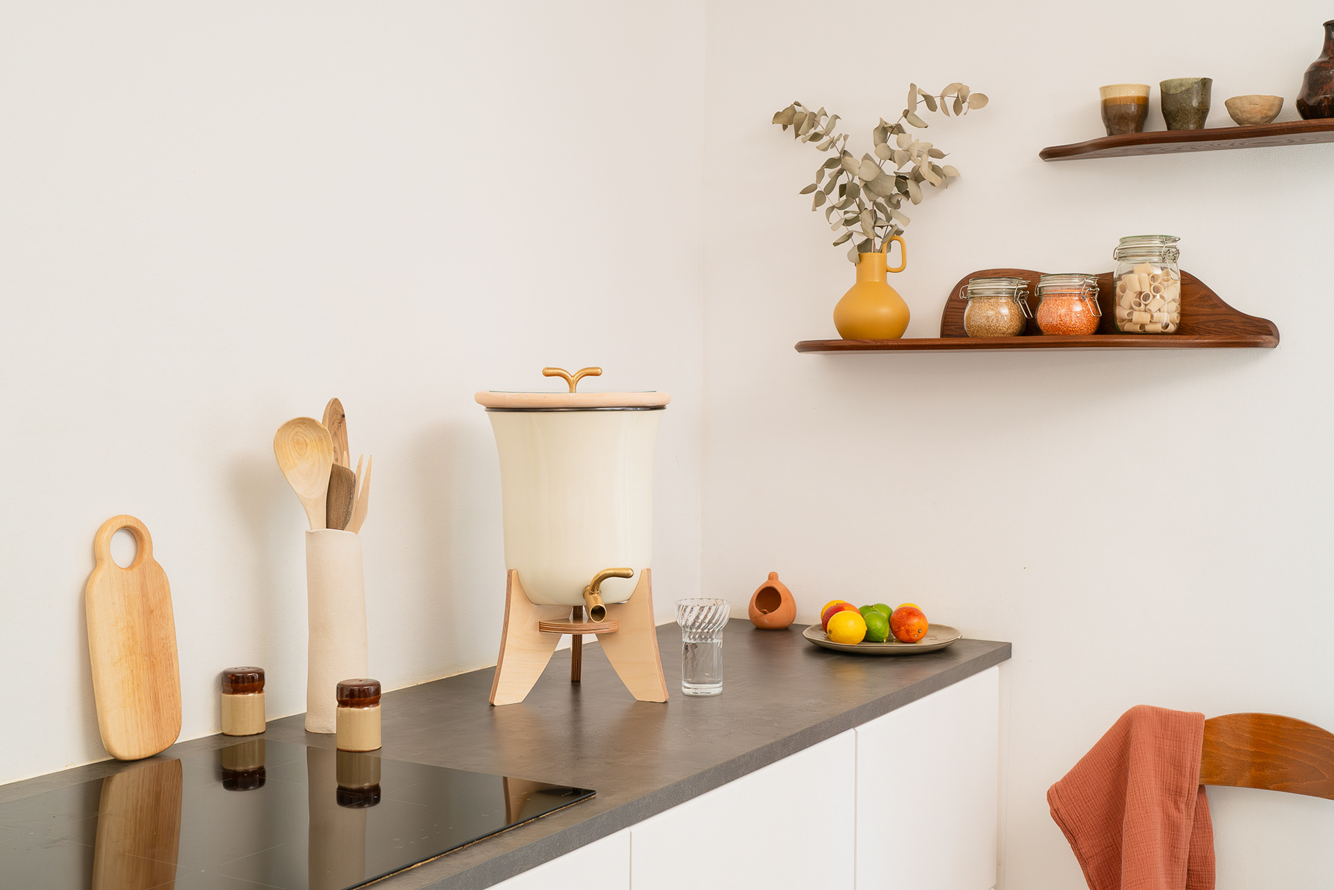 Volkao shape was drawn from fluid and organic movements, inspired by the natural behavior of water and mineral formations. This approach left to a soft, continuous geometry that gives the product a subtle sculptural presence at home.
